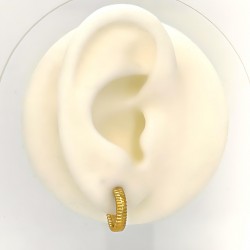 Estos elegantes aretes tipo argolla de oro presentan un diseño texturizado con un diámetro de 12 mm, perfectos para agregar un toque de sofisticación a cualquier atuendo.