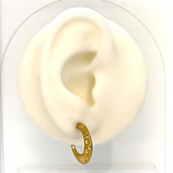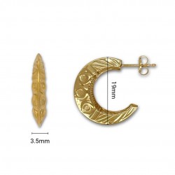 Estos elegantes aretes tipo argolla de oro presentan un diseño detallado y texturizado con un diámetro de 19 mm, perfectos para agregar un toque de sofisticación a cualquier atuendo.