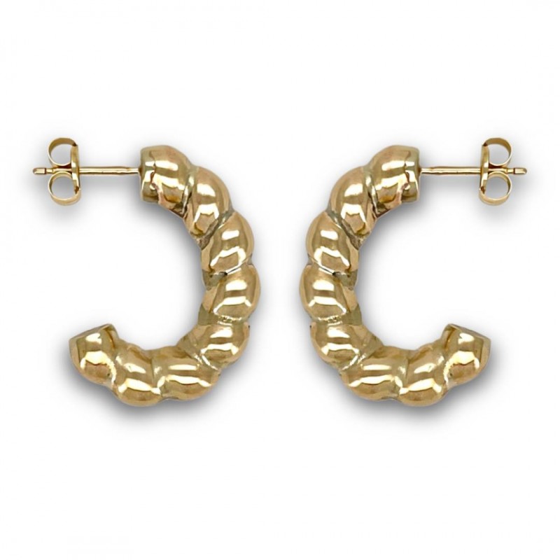 Estos elegantes aretes de aro de oro presentan un diseño bulboso con textura única con una altura de 22 mm, perfectos para agregar un toque de sofisticación a cualquier atuendo.