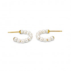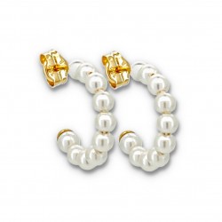 Estos elegantes aros dorados cuentan con perlas de concha perfectamente dispuestas y brillantes que añaden un toque de sofisticación a cualquier atuendo. Están diseñados para mujeres que buscan una elegancia atemporal y son perfectos para el uso diario y eventos especiales como bodas. Un verdadero clásico en joyería fina, estos aros están elaborados para brindar durabilidad y brillo duradero.