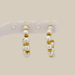 Estos aros están realzados por delicados detalles de perlas y separadores dorados. Una combinación perfecta de diseño contemporáneo y elegancia clásica, estos aros son ideales para usar con ropa informal y ocasiones formales. Diseñados para mujeres que aman las joyas sofisticadas pero con estilo, estos aros son livianos y versátiles, lo que los convierte en un accesorio perfecto para todos los días o una pieza destacada para eventos especiales.