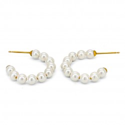 Estos lujosos aros de perlas de oro están diseñados pensando en la elegancia. Elaborados para eventos formales como bodas, cuentan con perlas bellamente engarzadas en un resistente aro de oro. La combinación de oro de alta calidad y perlas radiantes crea un accesorio sofisticado para mujeres que aprecian la joyería fina. Estos aros también se destacan cuando se combinan con atuendos formales o de noche.