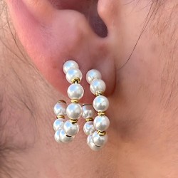 Estos elegantes aros de perlas doradas, con detalles dorados, son perfectos para looks de día y de noche. Elaborados con atención al detalle, los detalles dorados realzan la belleza natural de las perlas, lo que hace que estos aros sean lo suficientemente versátiles para usar en eventos casuales y ocasiones formales. Ligeros y elegantes, ofrecen un toque moderno a las joyas clásicas de perlas.