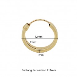 Estos pendientes de aro rectangulares miden 12mm de diámetro con una sección rectangular de 2x1mm, ofreciendo un look simple pero audaz. Ideal tanto para el uso diario como para ocasiones formales.