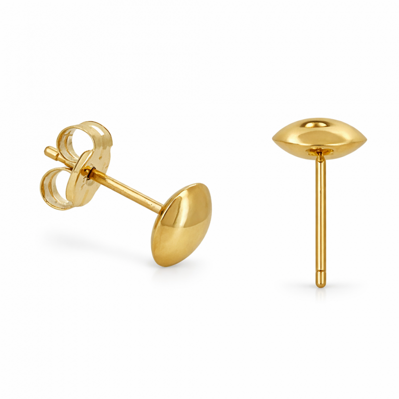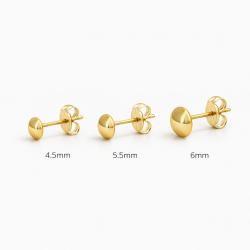 Pendientes de lenteja con forma de cúpula de 4,5 mm, 5,5 mm y 6 mm. Equilibrio perfecto entre simplicidad, refinamiento y un toque atemporal.