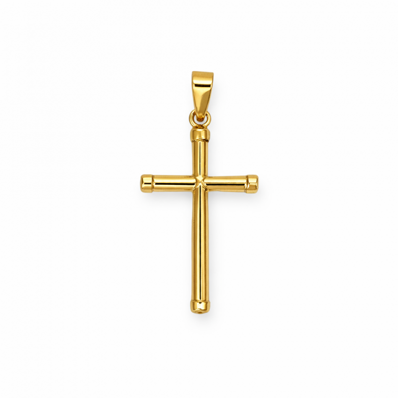 Un clásico colgante de cruz pulida en Oro amarillo para mujer, que combina fe y elegancia, adecuado para cualquier ocasión.