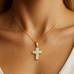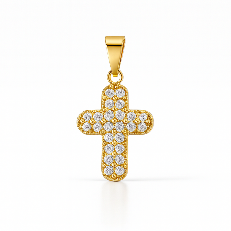 Brillantes circonitas de 1,50 mm iluminan este elegante colgante de cruz de oro auténtico, combinando devoción y glamour. Perfecto para regalar o para lucir elegante a diario.