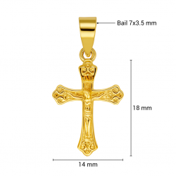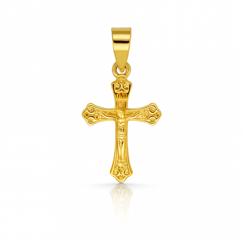 Descripción del producto:Crucifijo ornamental de oro amarillo con detalles decorativos de filigrana. Elaborado con precisión para quienes buscan joyería religiosa de alta calidad, con carácter y elegancia.Atributos del producto:• Material principal: Oro amarillo auténtico (disponible en 9K/10K/14K/18K)• Estilo: Crucifijo ornamental• Uso: Mujeres, hombres, niñas, unisex• Uso: Prendas religiosas, regalos, uso diario• Acabado: Grabado satinado y detalles pulidos• Dimensiones: 18 × 14 mm• Enganche: 7 × 3,5 mmInicia sesión para ver precios aproximados.