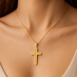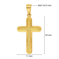 Esta audaz cruz redonda y abultada presenta bordes suaves y esculpidos y un acabado pulido. Con un tamaño de 20 × 15 mm, ofrece una presencia elegante y contundente, ideal para adultos que buscan una cruz de oro suave y contemporánea.