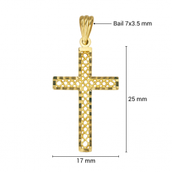 Una detallada cruz de la Trinidad calada, diseñada en oro amarillo genuino. Con texturas talladas y un refinado patrón de filigrana, esta pieza fusiona fe y artesanía. Perfecta para quienes buscan joyería religiosa delicada y de alta calidad.