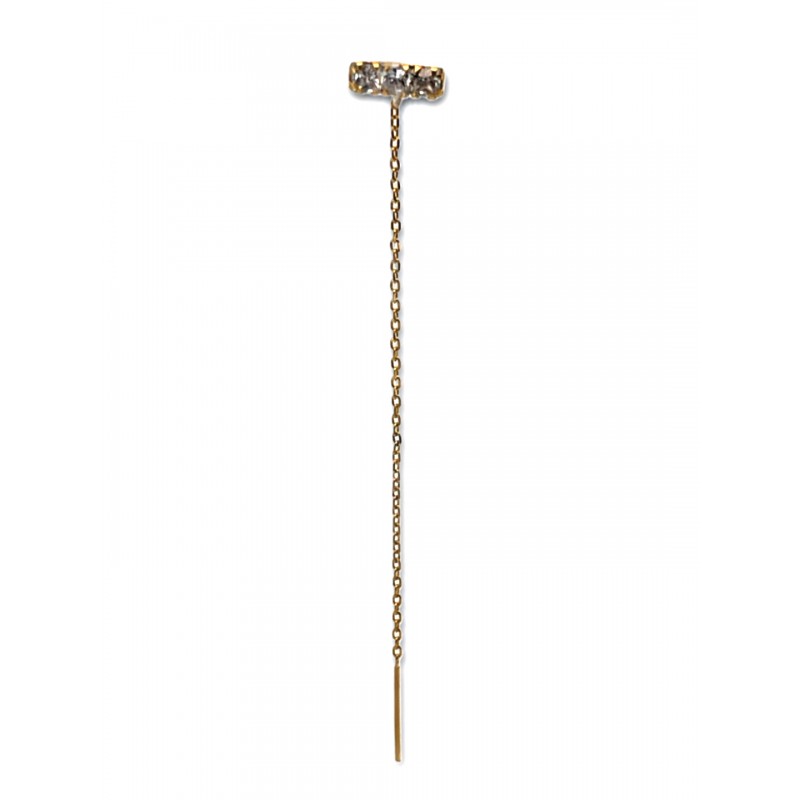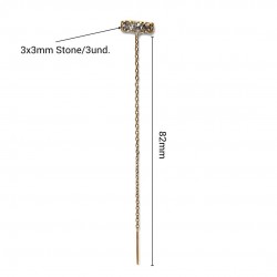 Estos elegantes aretes enhebrador presentan un diseño de barra moderno con tres circonitas brillantes y una longitud de 82 mm, perfectos para agregar un toque de sofisticación a cualquier atuendo.