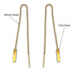 Estos minimalistas aretes Threader de oro amarillo cuentan con una cadena de 93 mm con elegantes barras rectangulares de 12x2,5 mm. Perfectos para uso moderno e informal, estos aretes añaden un toque de simplicidad y sofisticación a cualquier conjunto.