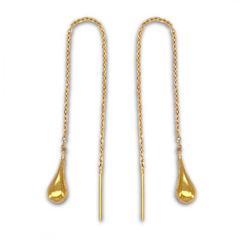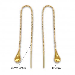 Elegantes aretes en forma de lágrima con un diseño de lágrima de 14x5 mm con una cadena de 75 mm. Perfecto para uso nocturno y formal, lujosamente elaborado para realzar cualquier atuendo.