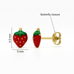 Dulces y vibrantes, estos aretes de esmalte con fresa están hechos en oro amarillo auténtico. Sus brillantes detalles en esmalte rojo y verde simbolizan la alegría y la inocencia, perfectos para regalar a niñas.