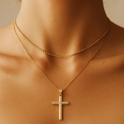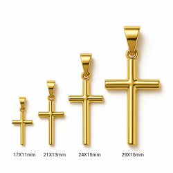 Elegante colgante de cruz tubular de oro auténtico, disponible en cuatro tamaños. Acabado pulido, ideal para uso diario o como un significativo regalo religioso. Venta al por mayor disponible.Características del producto