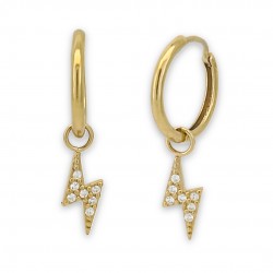 Diseñados para quienes marcan tendencia, estos aretes huggie dorados con charm de rayo están adornados con circonitas cúbicas para mayor brillo. Ligeros y elegantes, son un accesorio imprescindible.