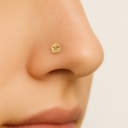 Cúpula pentagonal con grabado de estrella en oro macizo auténtico. Su acabado pulido y su poste en L de 0,7 mm ofrecen comodidad y una sensación de alta calidad.