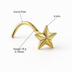 Pendiente de nariz con estrella grabada de cinco puntas en oro macizo auténtico con acabado pulido. Cómodo poste en L de 0,7 mm. Diseño distintivo que se agota rápidamente en tiendas.
