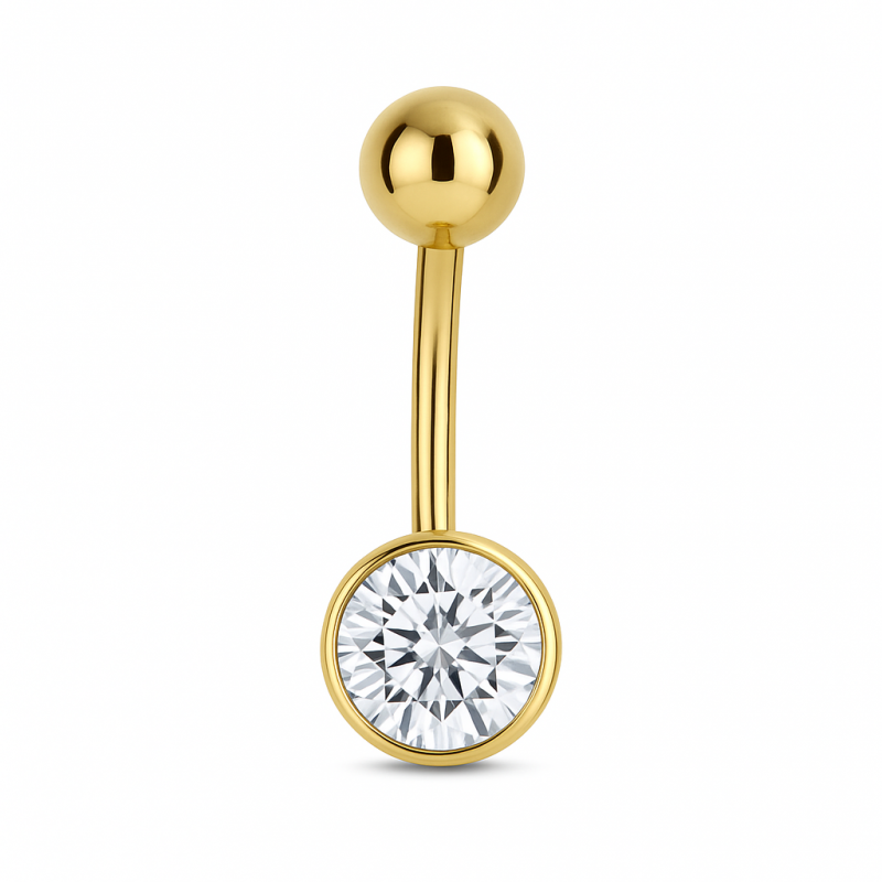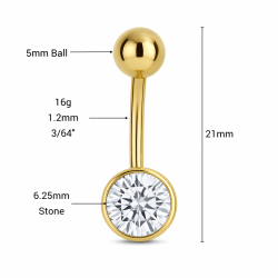 Piercing clásico para ombligo con bisel en oro de 14 quilates y circonita redonda de 6,25 mm para un ajuste cómodo y seguro. Ideal para uso diario con un acabado premium.Atributos del producto: