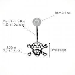 Motivo: calavera de 12x9mmPiedras: circón redondo 1.20mmCierre: bola de 5 mm con barra de plátano de acero.Metal: plata 925/000 chapada oro con bola y banana de acero.Inicie sesión para ver precios orientativos.