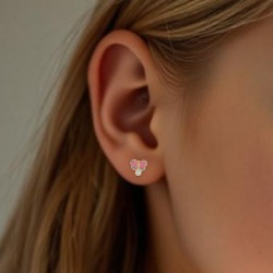 Estos aretes de oro lucen una vibrante mariposa rosa con una brillante circonita cúbica, perfectos para niñas. Hipoalergénicos y ligeros, ideales para uso diario.