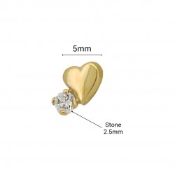 Estos pendientes dorados en forma de corazón lucen una delicada circonita de 3 mm, que añade elegancia y encanto a cualquier look. Hipoalergénicos y ligeros, perfectos para usar todo el día.