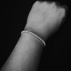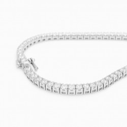 Elegante y atemporal, esta pulsera de tenis está elaborada en oro blanco hipoalergénico y luce diamantes de laboratorio de 3 mm de talla redonda que le otorgan un brillo radiante. Ligera y cómoda, es ideal tanto para el día a día como para ocasiones especiales. Una pieza refinada diseñada para mujeres modernas que valoran el lujo ético.